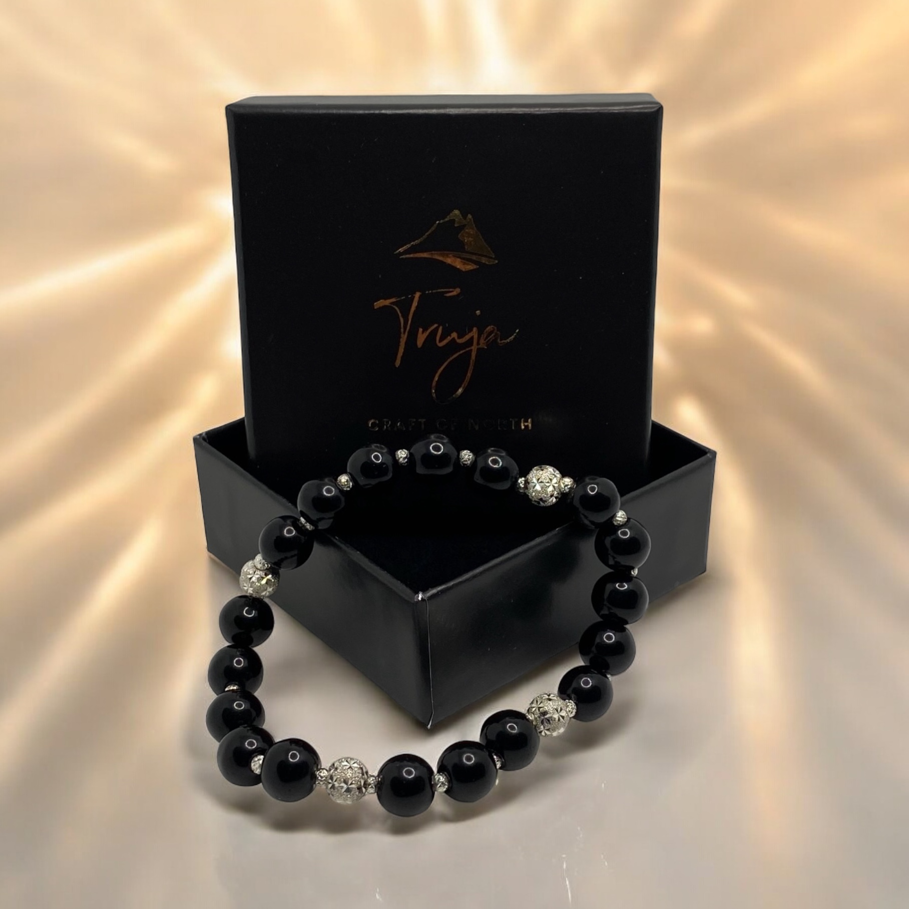 De sorte perlene er i glass og ekte sølvfasett perler.