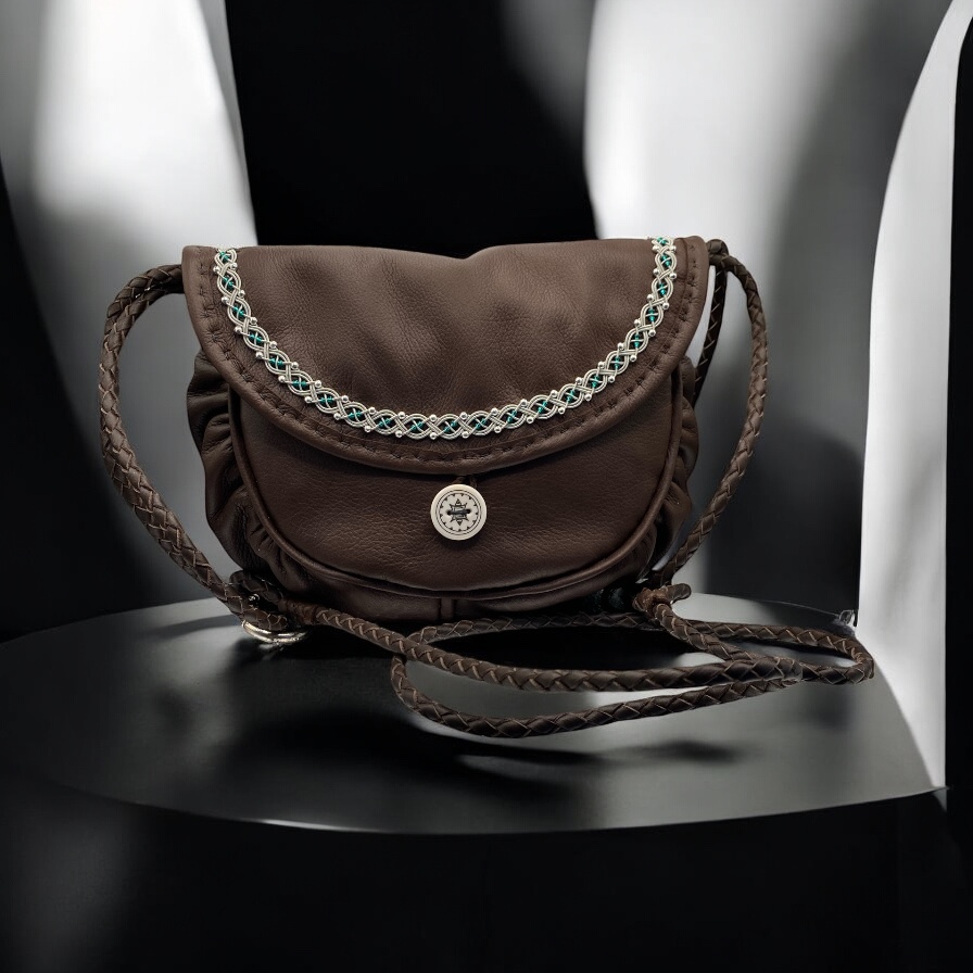 Vesker er i skinn med tinntådfletting og ekte sølvperler. Fargen på de sjøgrønne glassperlene kan endres til en annen farge, likeså skinnfargen (skriv i kommentarfeltet ønsket farge eller ta kontakt)